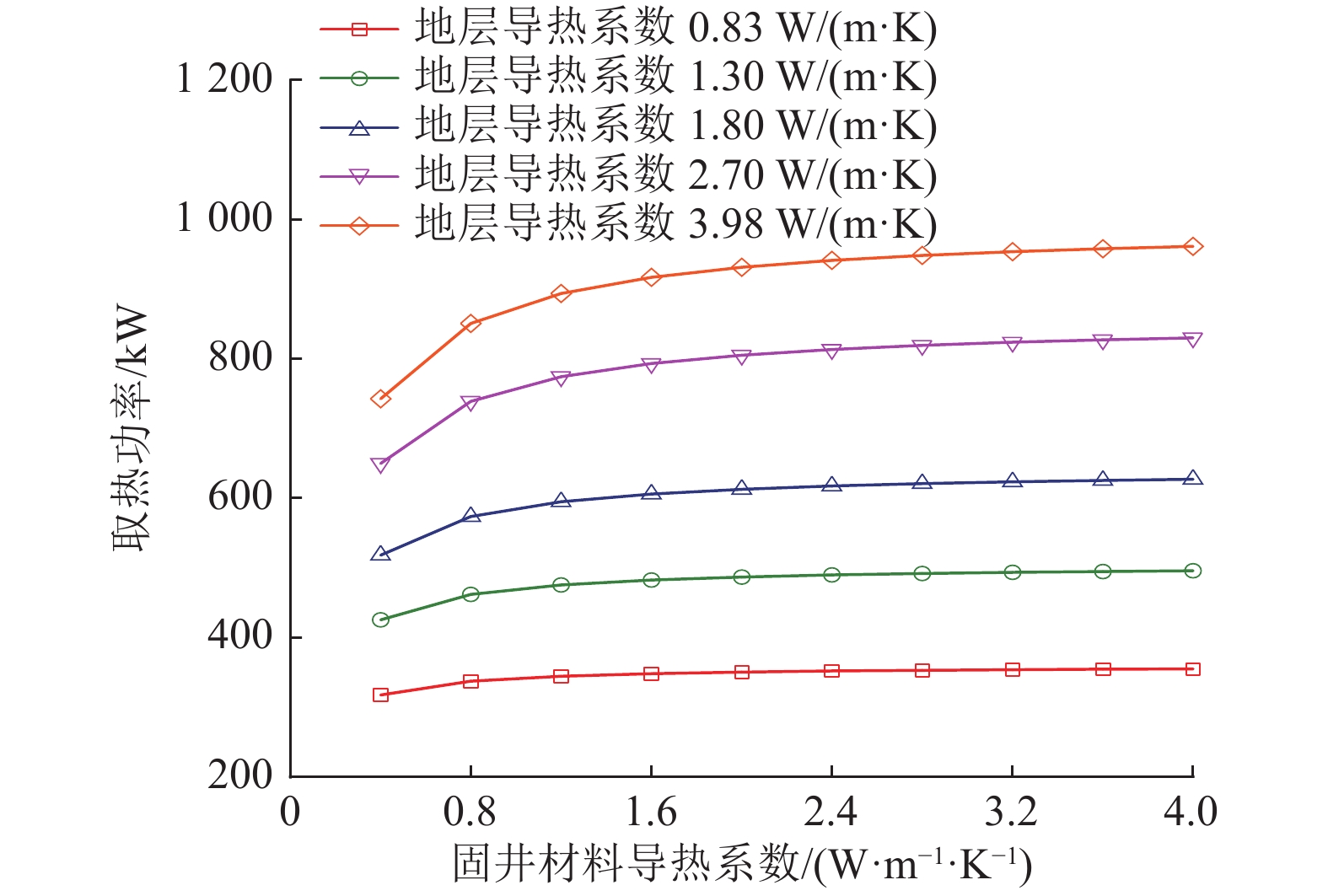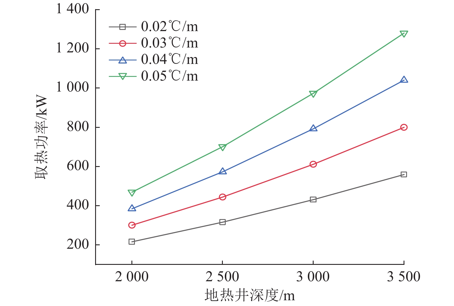 Vigorously promoting the technology for heating using moderately deep geothermal energy serves as an important measure for China’s pursuit of carbon neutrality and peak carbon dioxide emissions. A coaxial double-pipe heat transfer system for moderately deep geothermal wells can avoid damage to groundwater resources and the environment. Furthermore, the influencing factors of the wells exhibit complicated and nonlinear interactions. Based on the theoretical analysis and mathematical description of a moderately deep well with a coaxial double-pipe heat exchanger, this study established a layered heat transfer model for the geothermal well and verified its reliability. This study investigated a moderately deep geothermal well in the Guanzhong Basin in Shaanxi Province. Through numerical simulations, it systematically analyzed the heat transfer performance of the geothermal well, as well as its heat extraction capacity during continuous operation, under the influence of various factors. The results show that compared to the measured values, the outlet water temperatures calculated using the homogeneous and layered models exhibited maximum relative errors of 14.08% and 11.50%, respectively, and average errors of 7.29% and 6.93%, respectively. Therefore, the layered model enjoyed a higher calculation accuracy than the homogeneous model. Among all influencing factors, geothermal well depth, geothermal gradient, and the thermal conductivity of strata exerted the most significant influence on the heat extraction power of the geothermal well. There existed roughly linear relationships of the heat extraction power with the geothermal gradient, inlet water temperature, and the thermal conductivity of the inner tube. Moreover, the thermal conductivity of well cementing materials produced thermal resistance effects on the heat transfer process. The heat amount extracted from the moderately deep geothermal well decreased with the operating years, with the decreasing amplitude being high in the first five heating seasons and then decreasing. After 50 heating seasons, the annual average heat extraction power decreased by 15.59%. Assuming that a geothermal field is influenced if the geotemperature decreases by more than 1℃, the average influence radius of the geothermal field was about 65 m. In addition, due to the differences in strata, the contour lines illustrating the drop and recovery of formation temperature around the geothermal well exhibited stepped changes at the interface of the strata. Strata with higher thermal conductivity of rocks corresponded to a greater distance of temperature disturbance near the interfaces of strata. The results of this study can be applied to the evaluation of the heat extraction and transfer capacities of moderately deep geothermal wells and also serve as a reference for the design of coaxial double-pipe heat transfer systems for moderately deep geothermal wells.