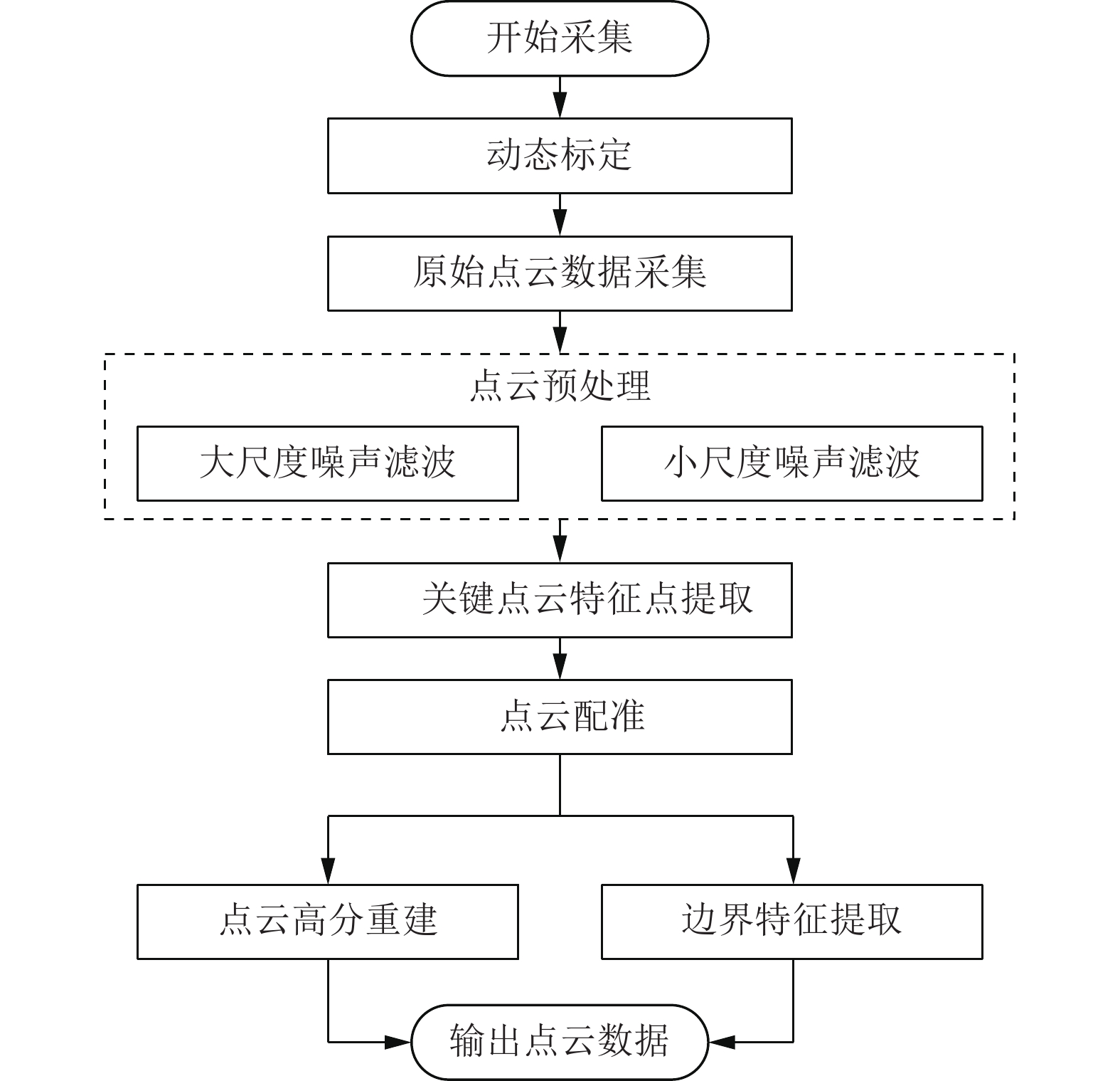 Intelligent and unmanned mining is an inevitable trend in the development of the coal industry. Precise geological information detection is one of the current key research and development directions in the construction of smart coal mines. The precise detection of information on roadways and the rapid acquisition of three-dimensional roadway models are important data sources for geological transparence. Through a comparative analysis of traditional roadway modeling methods and their advantages and disadvantages, a technical idea of using three-dimensional laser scanning reconstruction technology to construct a high-precision transparent working face roadway model is proposed. On the basis of the analysis of the technical problems faced by long-distance 3D laser scanning in underground coal mine working conditions, the principle of 3D laser scanning and the calculation method of spatial point coordinates are studied, and the realization process of the 3D laser scanning reconstruction technology of the roadway in transparent working faces is proposed. The key technologies of the 3D laser scanning reconstruction technology including the dynamic calibration of the 3D laser scanning system and the coordinate conversion method, the large-scale noise filtering method based on the statistical filtering method in the point cloud preprocessing technology and the small-scale noise filtering algorithm based on moving least squares, the SIFT feature detection algorithm and FPFH feature description algorithm in the point cloud key point extraction and feature description technology as well as the coarse registration technology based on the FPFH feature description algorithm in the point cloud registration technology and precise registration technology based on the iterative nearest point algorithm. Finally, the self-developed mobile 3D laser scanning system is used for practical application in three-dimensional laser scanning construction process, roadway point cloud data collection, boundary contour extraction, and joint modeling of roadways and working faces in working faces of Tangjiahui Coal Mine in Jungar Coalfield. The results show that the idea of 3D reconstruction of roadways in working faces based on 3D laser scanning technology proposed in the paper is technically feasible, providing a feasible technical path for fast 3D scanning and reconstruction of complex roadways.