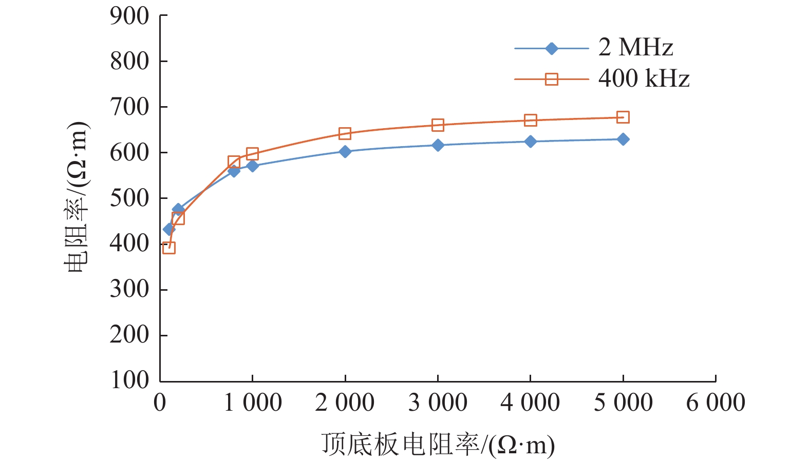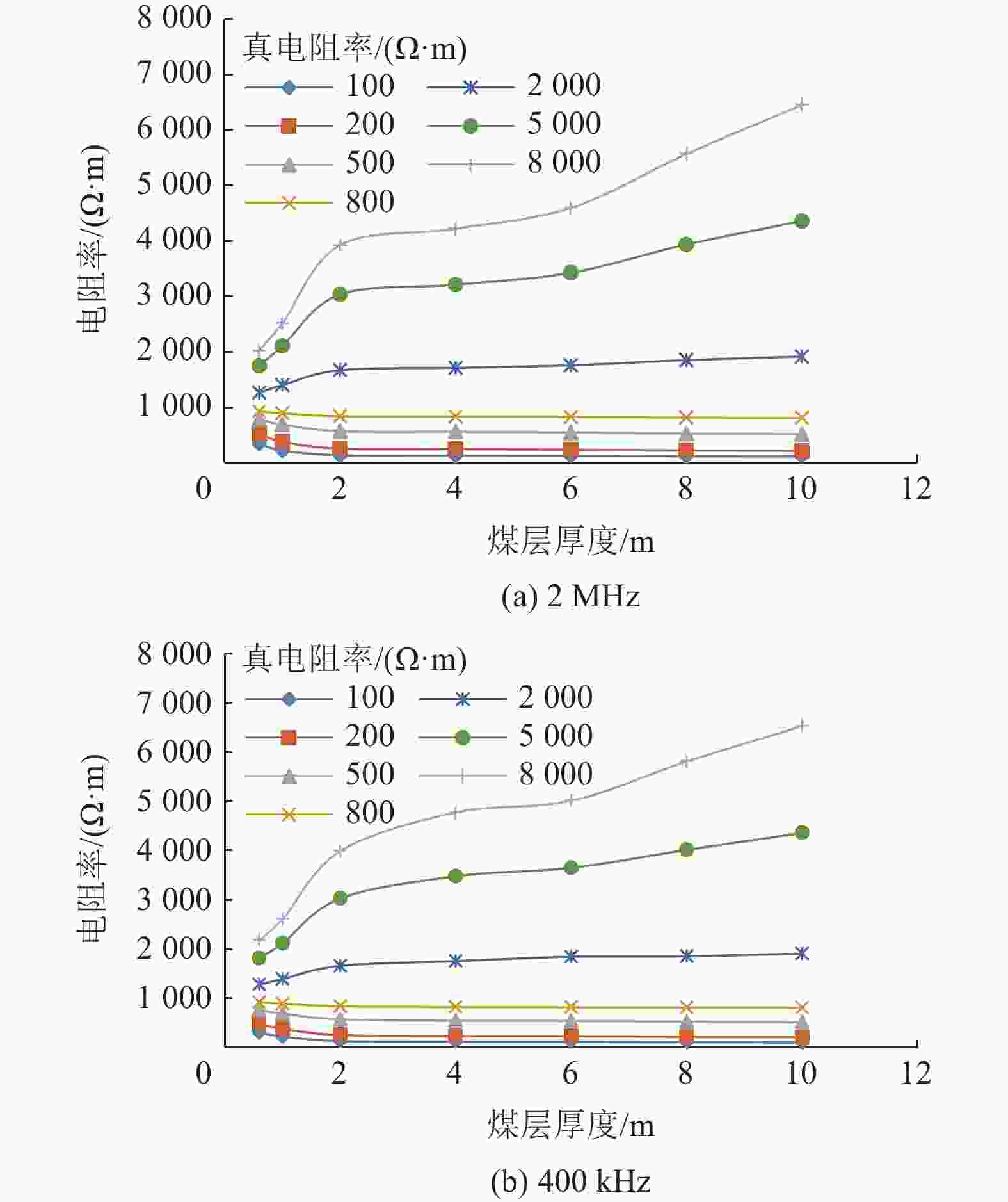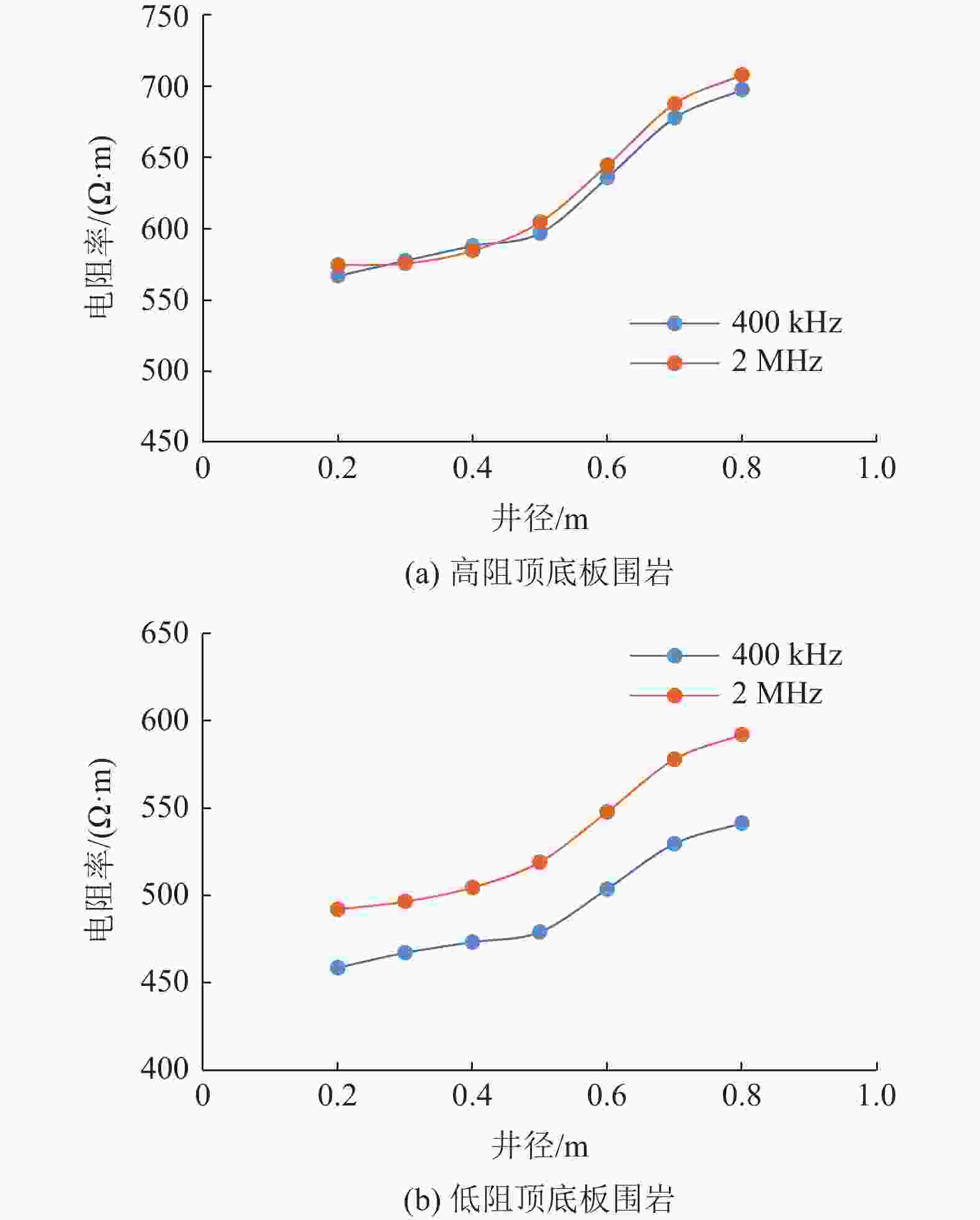 In order to figure out the influential factors of the detection by the electromagnetic wave instrument while drilling in coal seam horizontal wells, we studied the impacts of roof and floor surrounding rock resistivity, instrument eccentricity, coal seam borehole collapse and coal seam thickness on the measurement of resistivity through finite element numerical simulation. The resistivity response law of the amplitude ratio and phase difference calculation under the condition of high-resistivity coal rock formation was analyzed. On this basis, a three-layer geological mathematical model was established to simulate the difference between analytical and numerical solutions of the amplitude ratio and phase difference resistivity when the electromagnetic wave instrument while drilling was drilling in the coal seam at different emission frequencies, as well as the influence of formation relative dielectric constant on the amplitude ratio and phase difference calculation. The simulation results show that the analytical and numerical solutions of resistivity calculated by the amplitude ratio and phase difference are in good agreement, but when the resistivity is greater than 100 Ω·m, the amplitude ratio resistivity could not reflect the real resistivity of the coal seam, so it is better to use phase difference resistivity in the actual processing and interpretation. At different emission frequencies of high-resistivity coal seams, the resistivity data are mainly sensitive to the formation resistivity and insensitive to the dielectric constant. Only at ultra-high frequencies, the dielectric constant will have a great impact on the propagation of the electromagnetic wave.