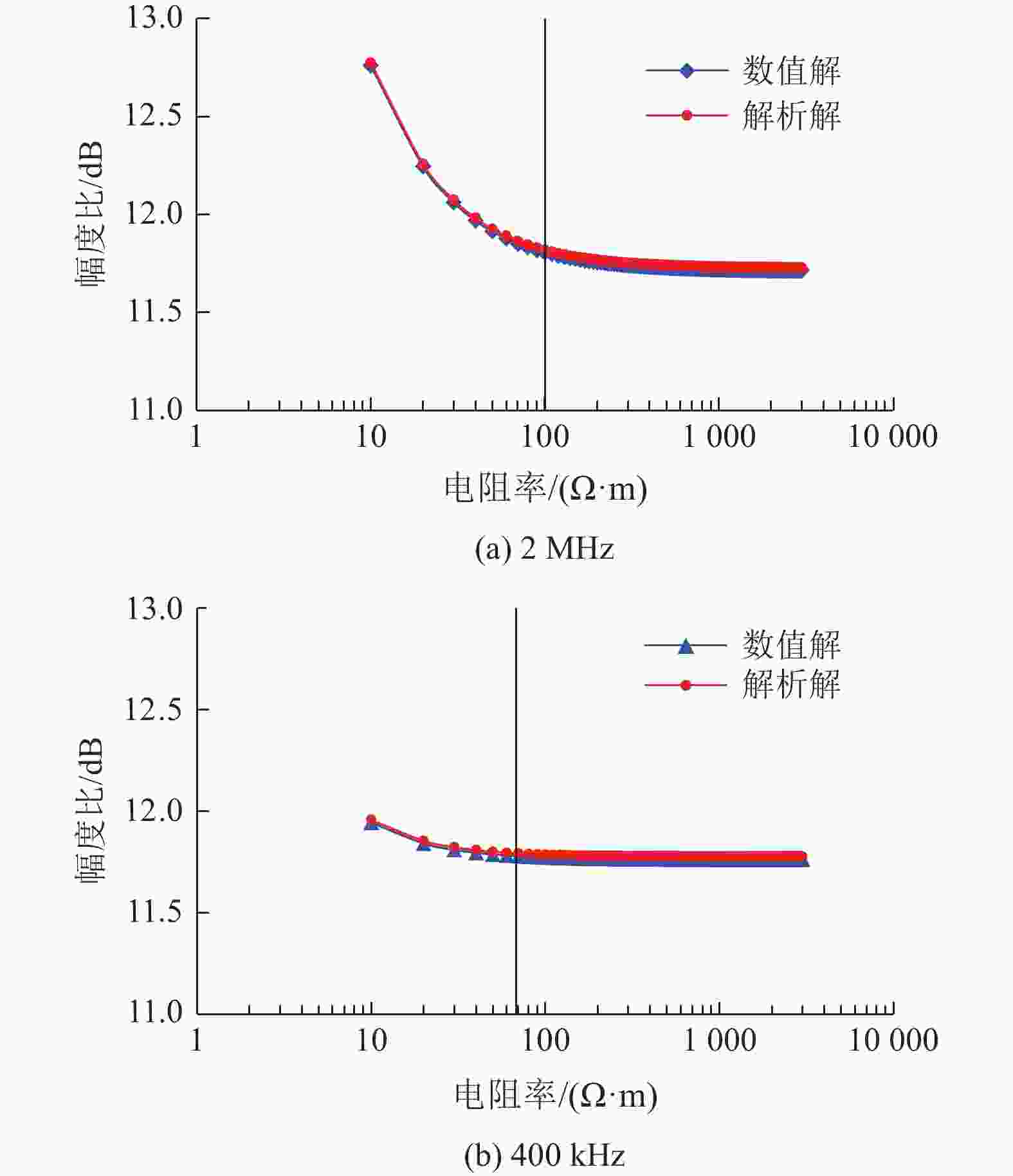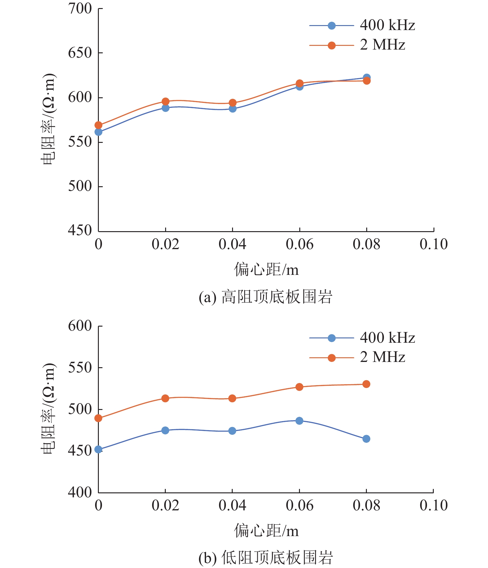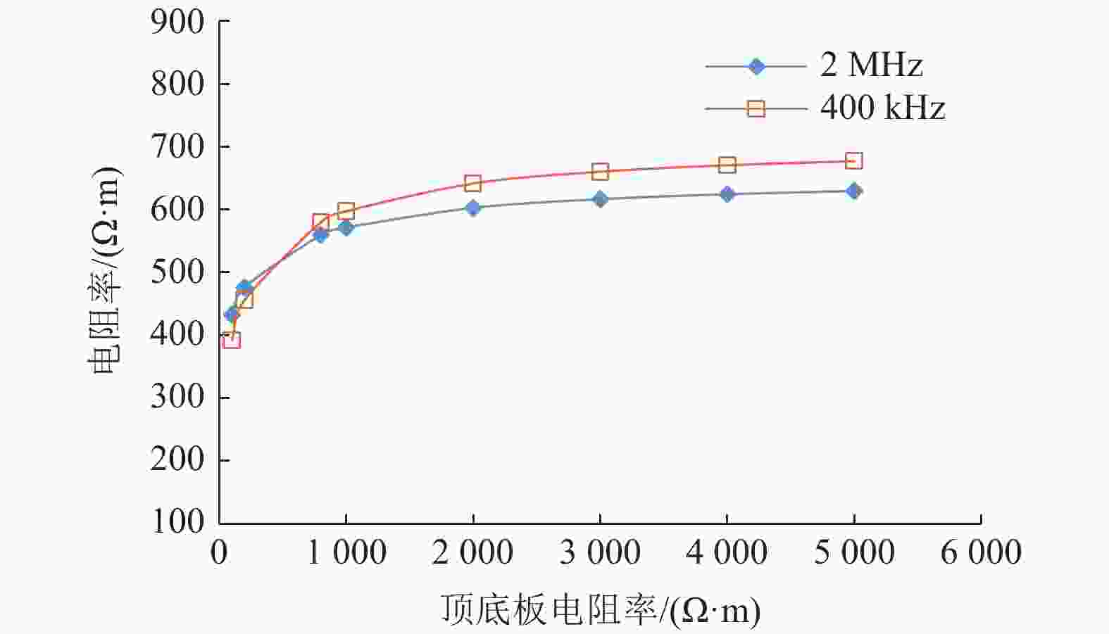 In order to figure out the influential factors of the detection by the electromagnetic wave instrument while drilling in coal seam horizontal wells, we studied the impacts of roof and floor surrounding rock resistivity, instrument eccentricity, coal seam borehole collapse and coal seam thickness on the measurement of resistivity through finite element numerical simulation. The resistivity response law of the amplitude ratio and phase difference calculation under the condition of high-resistivity coal rock formation was analyzed. On this basis, a three-layer geological mathematical model was established to simulate the difference between analytical and numerical solutions of the amplitude ratio and phase difference resistivity when the electromagnetic wave instrument while drilling was drilling in the coal seam at different emission frequencies, as well as the influence of formation relative dielectric constant on the amplitude ratio and phase difference calculation. The simulation results show that the analytical and numerical solutions of resistivity calculated by the amplitude ratio and phase difference are in good agreement, but when the resistivity is greater than 100 Ω·m, the amplitude ratio resistivity could not reflect the real resistivity of the coal seam, so it is better to use phase difference resistivity in the actual processing and interpretation. At different emission frequencies of high-resistivity coal seams, the resistivity data are mainly sensitive to the formation resistivity and insensitive to the dielectric constant. Only at ultra-high frequencies, the dielectric constant will have a great impact on the propagation of the electromagnetic wave.