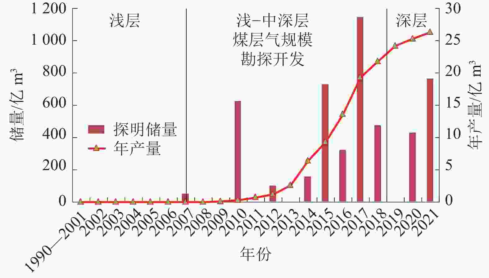 The buried depth of coal seam in the eastern margin of Ordos Basin changes greatly, and the characteristics of coalbed methane reservoir formation and reservoir reconstruction methods vary greatly with different buried depths. At present, coalbed methane exploration gradually extends from a shallow area of 1 000 m to a deeper area of 2 000 m. To study the theory and technology of efficient exploration and development of coalbed methane resources under different burial depths, this paper reviews the exploration and development practices in the eastern margin of Ordos Basin in the past 30 years. According to the changes of geological knowledge, technological development, exploration workload, exploration achievements and gas production,the process of coalbed methane exploration and development in the eastern margin of Ordos Basin is divided into three stages In the first stage of exploring shallow coalbed methane(CBM), under the guidance of the theory of “enrichment of tectonic highs in shallow coal-rich areas”, the gas field in Hancheng WL1 well area is discovered,with coal seam burial depth less than 800 m, large coal seam thickness and high gas content. In the second stage of. shallow-scale of deep coal bed methane exploration, Under the guidance of “hydrodynamic gas control-tectonic adjustment-gently sloping monocline” formation theory, we selected the sweet spots with “burial depth less than 1 500 m, good hydrodynamic closure conditions, large coal seam thickness, high gas content, gently sloping monocline and positive tectonics”, and discovered the coal-bed methane fields in Baode and Linfen, changing the concept of reservior transformation, and realized the effective production enhancement and transformation of Hancheng tectonic coal. In the breakthrough stage of deep CBM exploration, the reservoir formation model of “temperature -pressure controlled gas and high saturation” is put forward to guide the exploration breakthrough of CBM in depth of more than 2 000 m. On this basis, the occurrence, enrichment characteristics and target direction of coalbed methane in typical blocks are analyzed, and three enlightenments from coalbed methane exploration and development in the eastern margin of Ordos Basin are summarized: Preservation conditions are important factors for enrichment and accumulation of shallow coalbed methane in Baode block; Three types of indirect roof fracturing and perforating modes support the coal seam stimulation in Hancheng structure; The “geology-engineering” sweet spot evaluation boosts the exploration breakthrough of deep coalbed methane in Daning-Jixian Block.