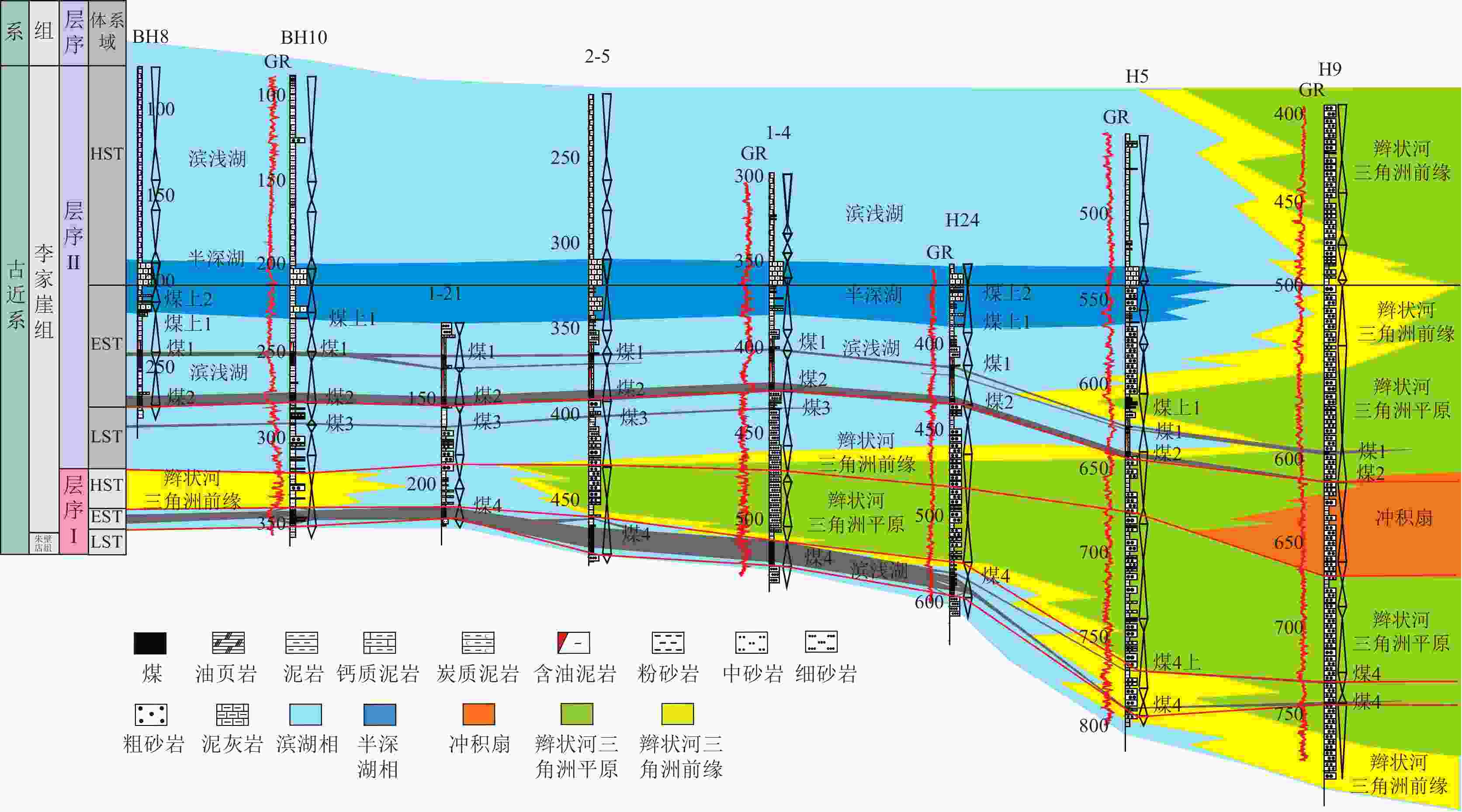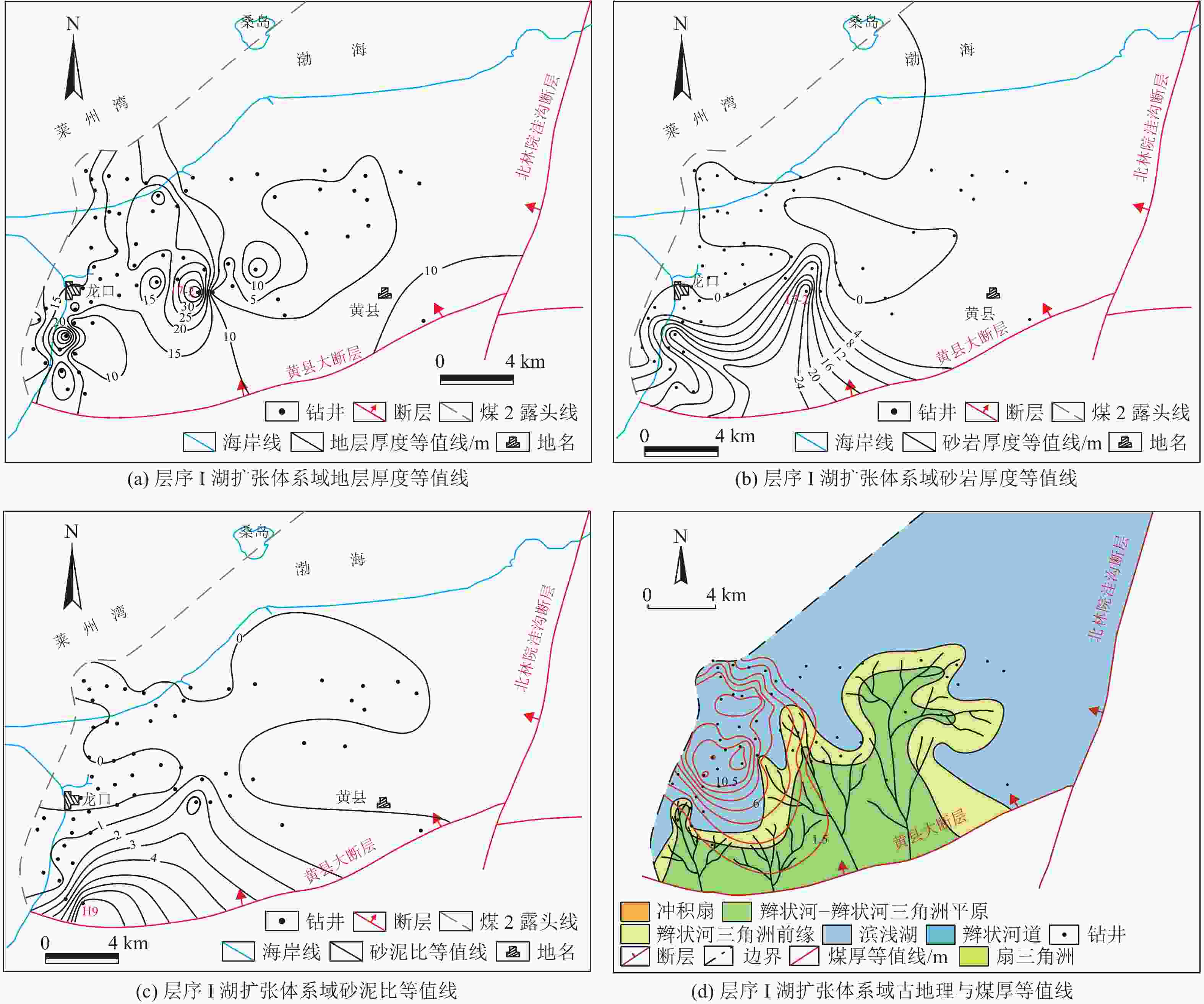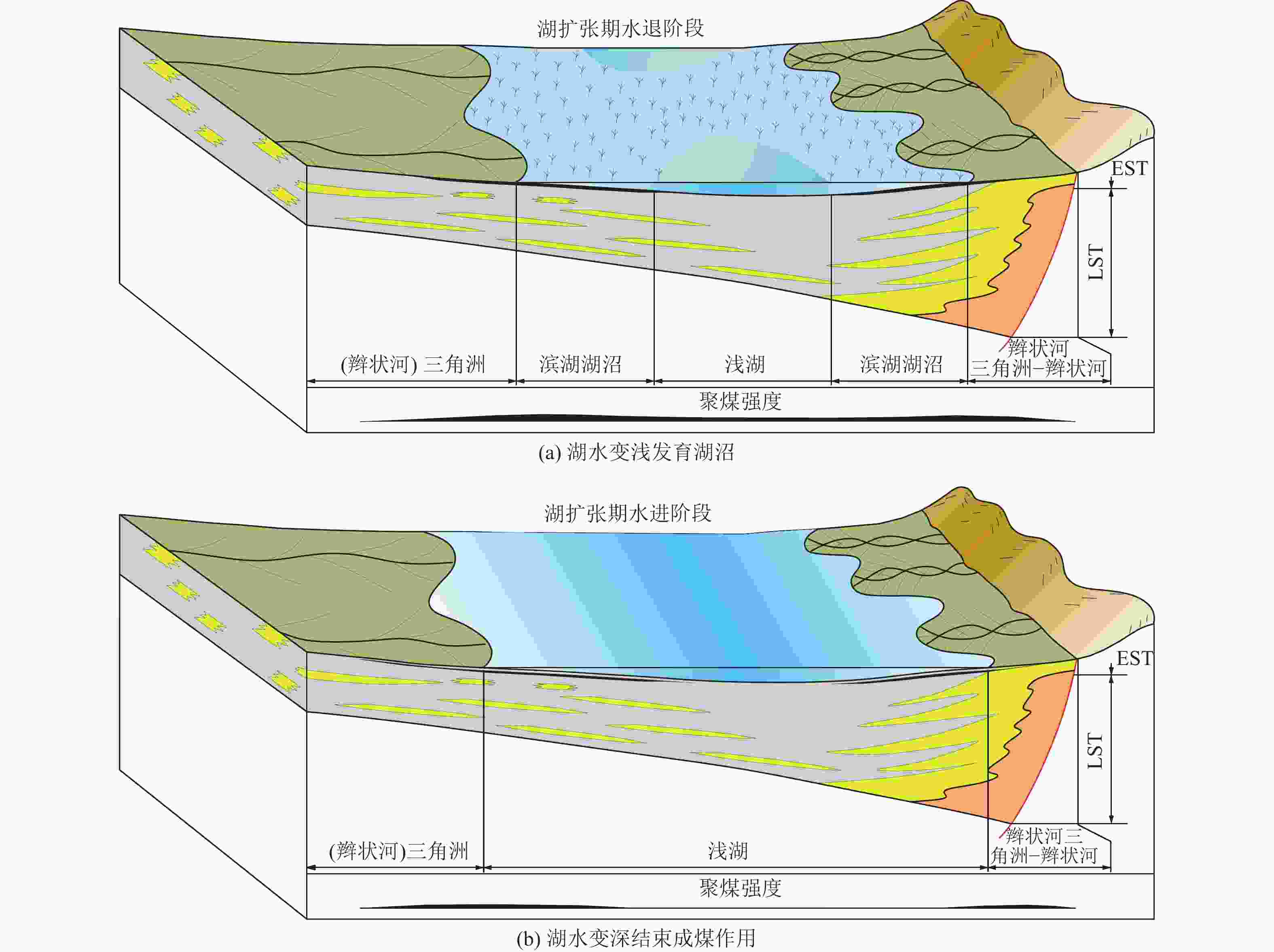 There are abundant coal-type oil and gas resources in Chinese sea area, but few researches have been conducted on the coal-type source rock, which seriously restricts the exploration of coal-type oil and gas resources in the sea area. Herein, this study on sedimentary coal-controlling effect and coal-forming model was carried out based on Huangxian Basin that is a paralic faulted basin with same coal-forming period, similar geological conditions and high degree of research for the coal basins in the sea area. Specifically, the pattern, evolution and sedimentary coal-controlling effect of paleogeography during the coal-forming period were reconstructed with full consideration to the previous research results. The results show that: (1) alluvial fan, fan delta, braided river delta and lacustrine deposit are mainly developed in the Paleogene coal measures in Huangxian Basin, where two third-order sequences can be identified. Definitely, the coal seam is mainly developed in the braided river delta and shore-shallow lacustrine environment during the lake expansion systems tract (EST). (2) The sequence-paleogeographic pattern of the EST and high-stand systems tract (HST) in sequence I, as well as the low-stand systems tract (LST) and EST in sequence II, covering the whole coal-forming process of Paleogene was comprehensively reconstructed. Meanwhile, the sedimentary evolution characteristics and sedimentary coal-controlling effect were analyzed. The coal seam is mainly developed in the late LST-early EST and the lacustrine bog environment in the front of braided river delta with the lake level rising slowly, and gradually expanded to the braided river delta. Besides, the coal seam is mainly developed in the middle and late EST, and the shallow lake sedimentary environment with the lake level frequently changing from shallow to deep. (3) Two typical sedimentary coal-forming models of Paleogene paralic faulted basins were established. Firstly, the coal-forming model of shore-shallow lacustrine bog braided river delta is mainly developed during the late LST to early EST when the lake level rose slowly. In this model, the coal seam thickness is relatively large but its distribution is relatively limited, such as coal 4 and coal 2. Secondly, the coal-forming model of shore-shallow lacustrine bog shore-shallow lacustrine is mainly developed during the descending and ascending of lake level in the mid-late EST. The frequent rise and fall of lake level lead to frequent appearance and disappearance of coal-forming environment, resulting in small thickness and wide distribution of coal seam, such as coal 1, upper coal 1, etc. Generally, the development law of coal seam and the sedimentary coal-forming model established in the paralic faulted basin illustrated in this study would provide some theoretical support for the exploration of coal-type source rocks in the sea area.