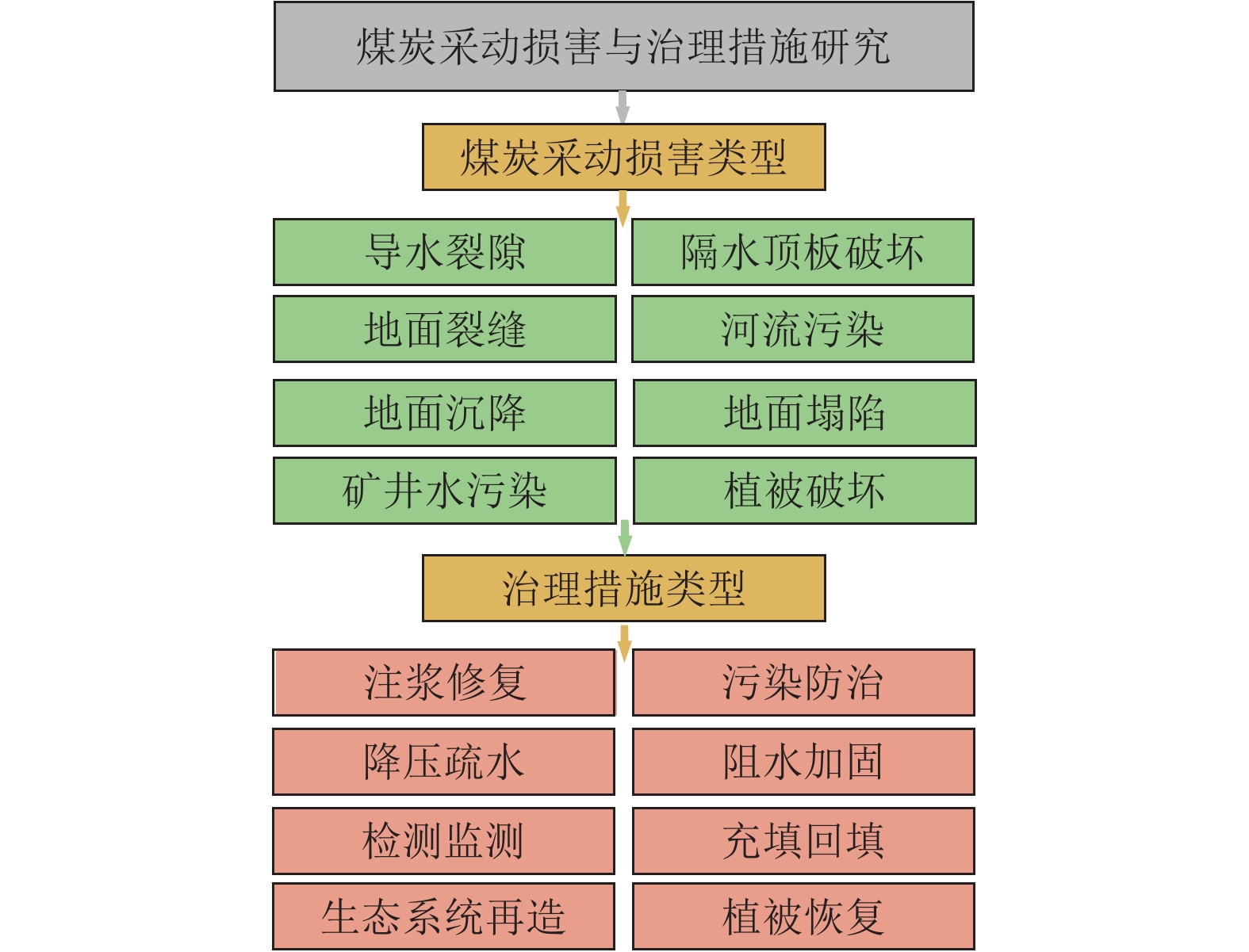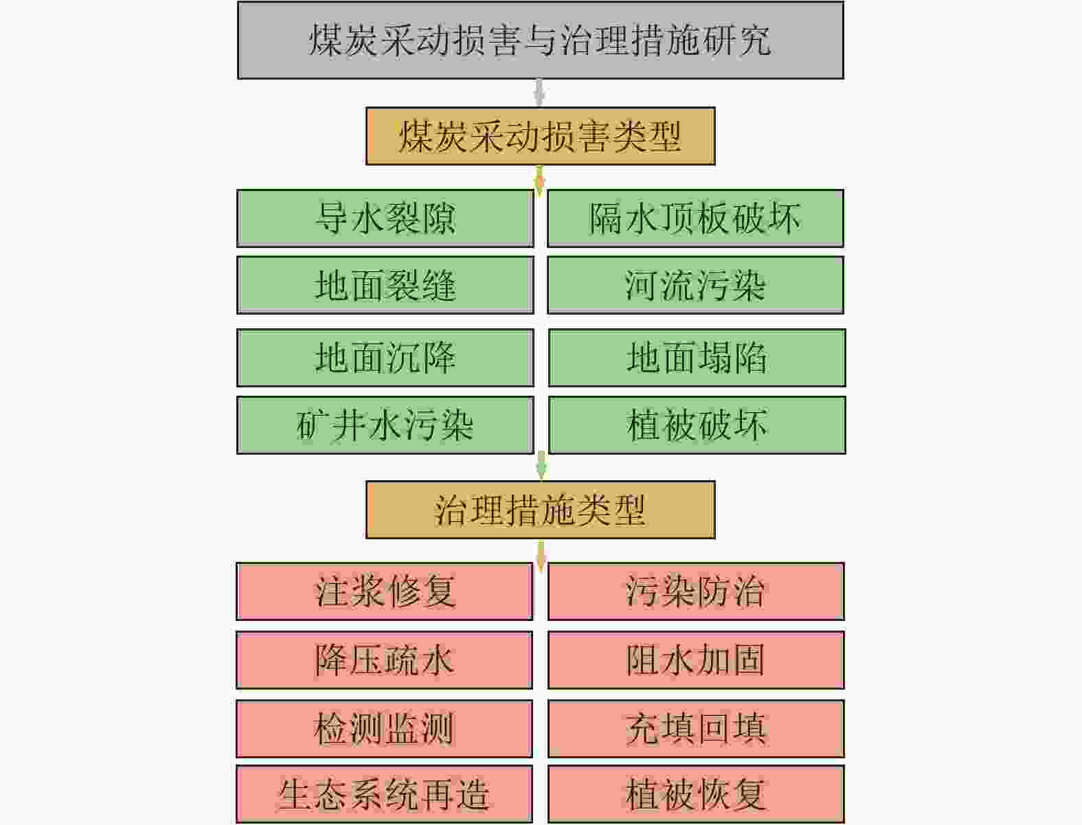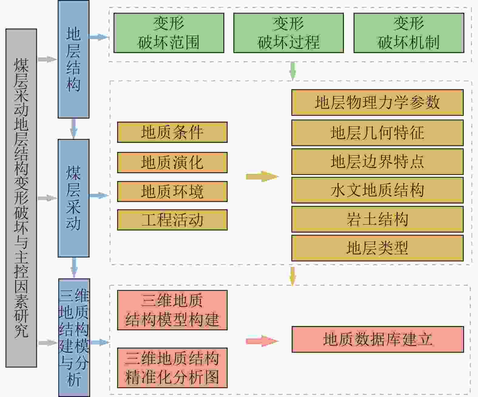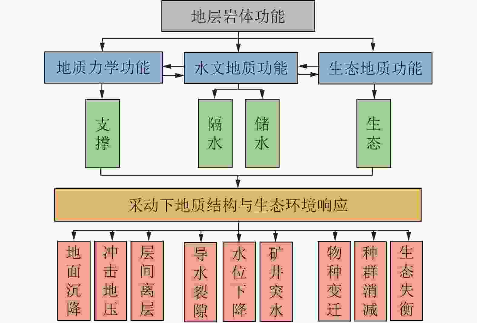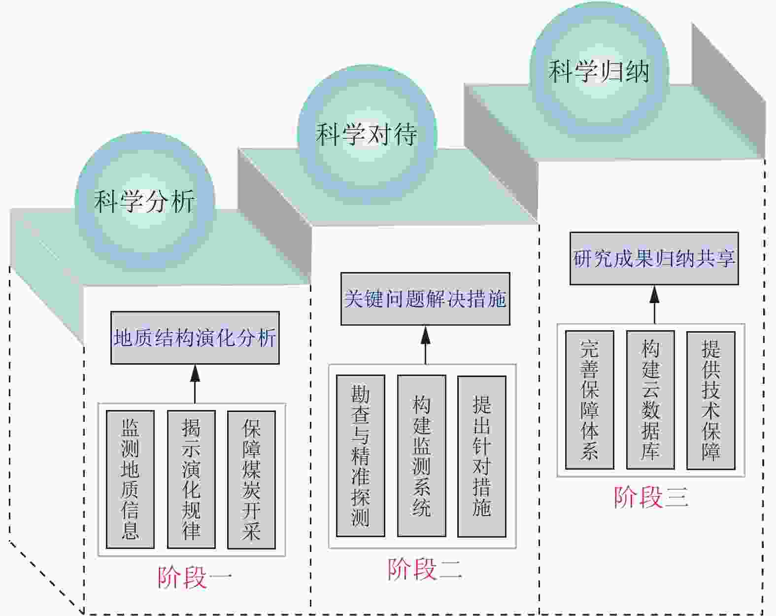 Large-scale and high-intensity mining of coal resources has induced damage to geological conditions and ecological environment in coal mining areas. It is of great significance to study the coupling mechanism of geological structure-groundwater environment-ecological environment dynamic evolution caused by coal mining. Development of the theory and technology of geological guarantee for green coal development is also critical for ensuring the high-quality development of coal industry in China. In additional to the current coal mining technology, research status of geological guarantee for green development of coal is analyzed in this paper Scientific connotation of “system of geological guarantee for green development of coal” is proposed. Specifically, the following aspects are mainly included in the present study. (1) Comprehensive geological conditions for coal occurrence before mining, and the classification of ecological environment type of the mining area are evaluated and investigated. The damage type of the coal mining area and its main control factors are elaborated through the systematic investigation and analysis of 3D geological structure, hydrogeological conditions, geotechnical engineering properties and ecological environment. (2) Changes in geological conditions and functional system evolution of geological structures under the action of coal mining are studied. Deformation characteristics of overburden rocks and the response mode and damage law of geological conditions under coal mining conditions are clarified. The spatiotemporal evolution characteristics and damage mechanism of ecological environment under the coupling effects of stress field, deformation field, seepage field and other fields during mining are revealed. (3) Green geological guarantee technology and ecological environment functions after coal mining are reconstructed. The interaction among overburden rock structure, geological structure function and ecological environment after mining are studied. Utilization ways of gob and remaining resources are proposed, and functions of ecological environment in the coal mining area are recovered. A database containing the information on stratum structure, hydrogeological structure and mechanical properties of rock mass is created based on the accurate exploration and monitoring. A dynamic model of geological structure evolution during coal mining is established, and a comprehensive research platform for coal resource mining and geological environment protection in the ecologically-fragile areas is constructed, to provide support for green and safe development and ecological environment protection in the whole coal life cycle and further to seek the optimal way for solving the contradiction between coal mining and ecological civilization construction. In addition, the geological guarantee theory and technology for green coal mining with the multidisciplinary intersection of basic geology, mining science, ecology and humanist economics need to be developed in the geoscientific system of green coal mining from three scientific aspects, i.e., analysis, treatment and generalization. On this basis, the knowledge system of green and safe development integrating coal mining, geological engineering technology, ecological environment and humanistic economy need to be established to serve the green and safe coal mining.